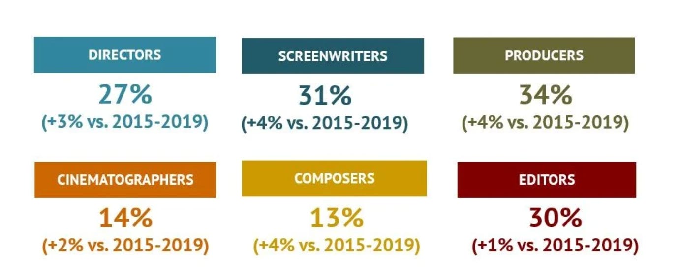 Women Make Up 27% of Feature Film Crews in Europe, Says New ReportProduction, editing, and screenwriting show highest female representation behind the camera, but key creative roles still lag.Sep 23, 2025∙ PaidShareEuropean Audiovisual Observatory study reveals slow progress on gender equality in film production between 2015 and 2024The European Audiovisual Observatory, an institution under the Council of Europ…Continue reading this post for free, courtesy of Le Dispatch.Claim my free postOr purchase a paid subscription.